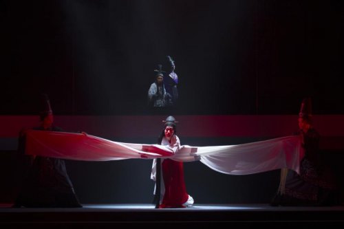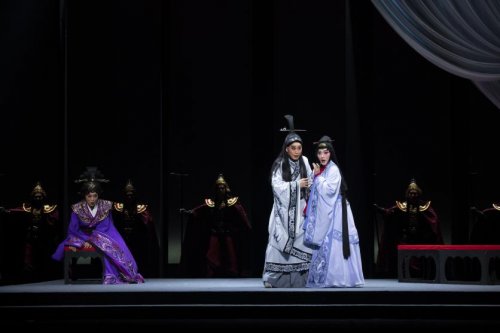 值得一提的是,该剧首次恢复使用上党铜器——上党平锣、上党钗、上党小锣,实现武场音乐的本真回归。唱腔设计秉持传统古典风格,突出上党梆子高亢激越的艺术特色,梆子声急促而起,精准传递人物幽微复杂的内心世界。全剧坚持回归艺术本体,强调剧本文学性,突出表演核心,舞美空灵写意,在“双寡夜辩”等关键场次中迸发强烈戏剧张力,揭示古代女性在权力漩涡中的困境,营造出浓郁的“莎士比亚式”悲剧氛围。